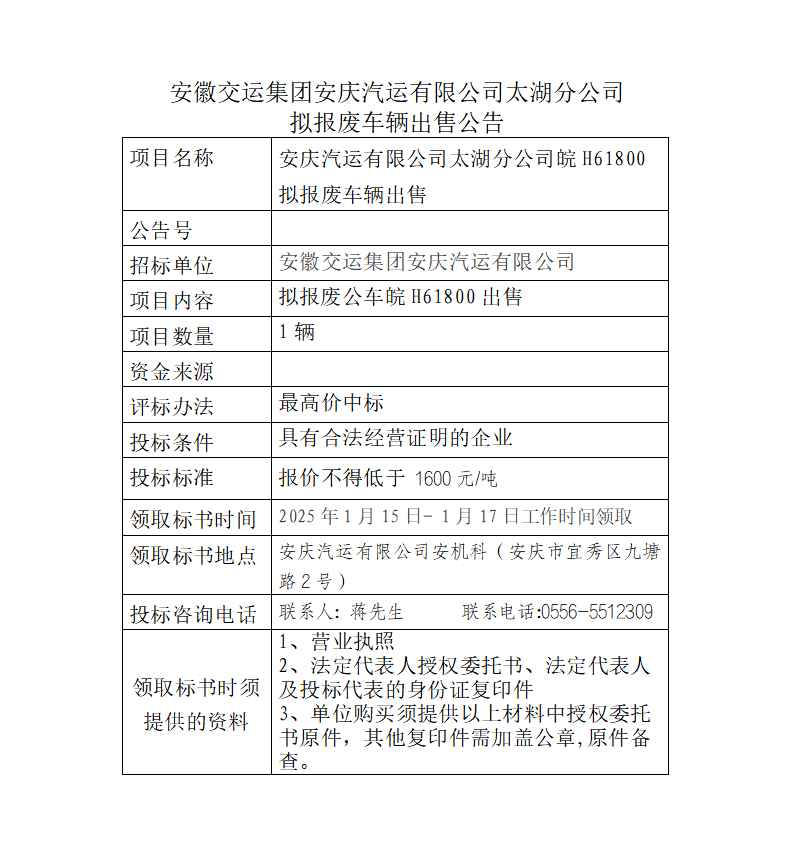 太湖分公司擬報(bào)廢車(chē)輛出售公告