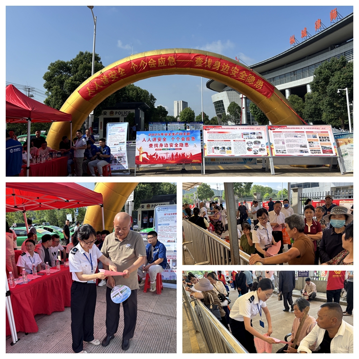 活動現(xiàn)場,工作人員各司其職,通過多種形式全方位、多角度地開展安全知識宣傳。一張張色彩鮮艷的安全月宣傳海報張貼在顯眼位置,一條條醒目的標語和橫幅隨風飄動,一塊塊內(nèi)容豐富的宣傳展板整齊排列,再加上精心設(shè)置的咨詢臺,共同營造出濃厚的安全宣傳氛圍;顒泳o緊圍繞“人人講安全、個個會應(yīng)急—查找身邊安全隱患”這一主題,向過往的乘客和市民傳遞著安全生產(chǎn)月的重要知識。