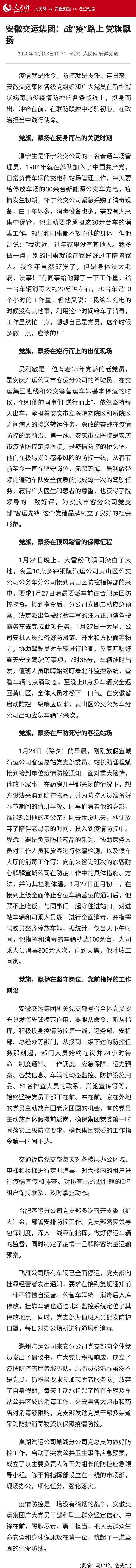 人民網(wǎng):安徽交運(yùn)集團(tuán):戰(zhàn)“疫”路上 黨旗飄揚(yáng)