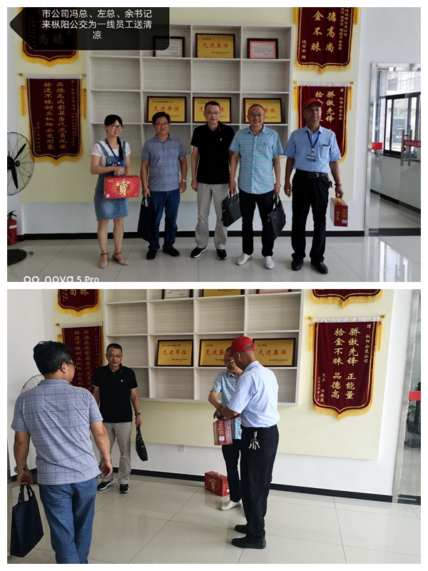 隨著夏季高溫來臨,為進(jìn)一步做好暑期安全生產(chǎn)和防暑降溫工作,7月3日下午,公司副總經(jīng)理馮定春、總經(jīng)理助理左普慶一行到樅陽公交分公司“送清涼”,親切慰問高溫下堅(jiān)守一線崗位的駕駛員和工作人員,并送上消暑物品。