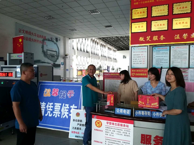公司副總經(jīng)理吉?jiǎng)倎戆矐c中心站“送清涼”