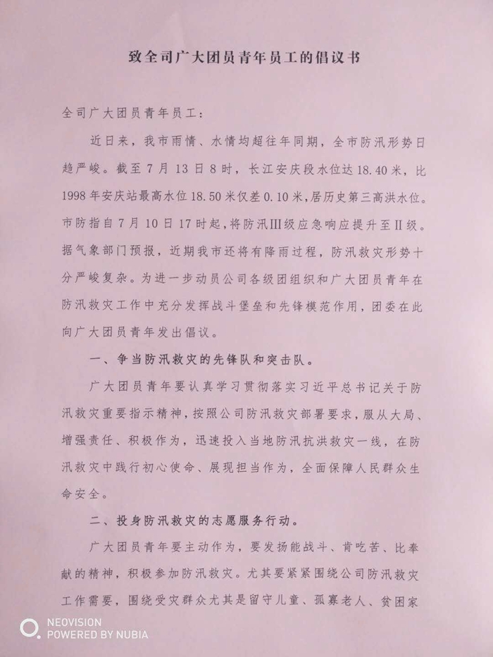 致全司廣大團員青年員工的倡議書