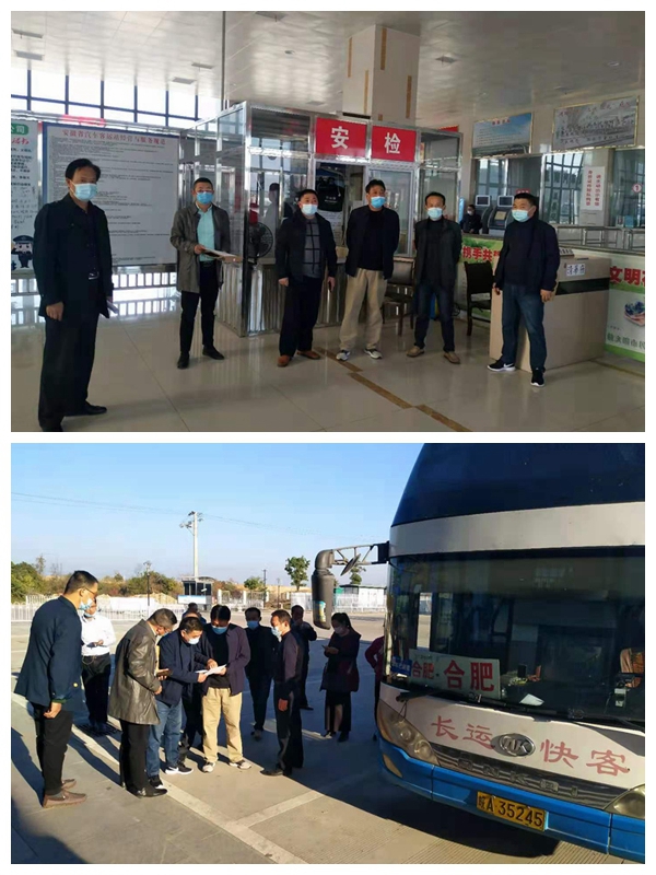 會(huì)議傳達(dá)了安慶市疫情防控工作電視電話會(huì)議以及懷寧縣交通局的疫情防控緊急會(huì)議精神,對(duì)分公司積極落實(shí)疫情防控戰(zhàn)時(shí)機(jī)制進(jìn)行了工作部署,要求各單位各部門嚴(yán)格按照市政府、市公司要求做好疫情防控戰(zhàn)時(shí)機(jī)制下各項(xiàng)重點(diǎn)工作,實(shí)行領(lǐng)導(dǎo)值班制度。次日支部書記柯國慶與常務(wù)副經(jīng)理王思陸帶領(lǐng)相關(guān)人員攜帶部分疫情防控用品到石牌片區(qū)檢查。檢查組召集石牌分管領(lǐng)導(dǎo)、車站、車隊(duì)負(fù)責(zé)人布置疫情防控工作,要求車站、車隊(duì)按上級(jí)要求做好疫情防控,所有人員佩戴口罩,實(shí)名制購票,進(jìn)站測(cè)溫掃碼,確認(rèn)安全后乘車。經(jīng)營(yíng)場(chǎng)所、經(jīng)營(yíng)車輛通風(fēng)消毒,對(duì)乘車人員進(jìn)行信息登記,車輛憑消毒標(biāo)志發(fā)車等,確保疫情防控工作措施得力,取得實(shí)效。