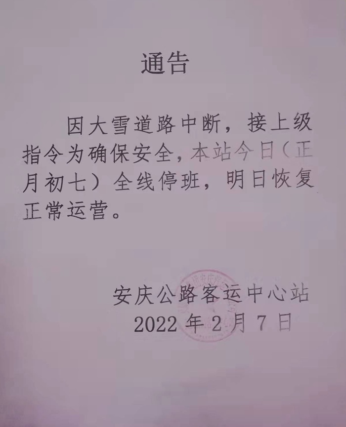 安慶中心站停班公告