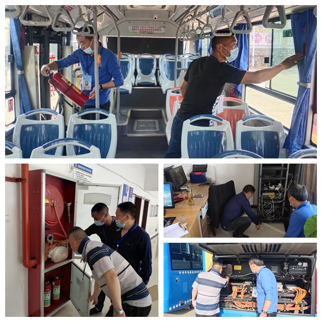 檢查組實(shí)地對(duì)辦公區(qū)域的電路設(shè)施、消防設(shè)施進(jìn)行了查看,重點(diǎn)檢查了停保場(chǎng)的滅火器、消防池,車間的電路設(shè)施以及充電樁、配電房等,確保消防設(shè)施安全有效,充電樁、配電房能正常工作。隨后檢查組對(duì)運(yùn)營(yíng)車輛的滅火器、安全錘、三角木、緊急逃生出口等進(jìn)行了認(rèn)真排查。
